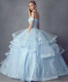 Elegant Off-Shoulder Quinceañera Gown | Embroidered Appliqué & Open Back