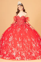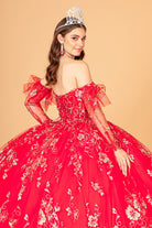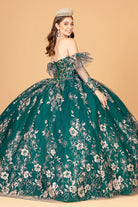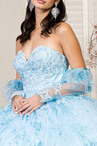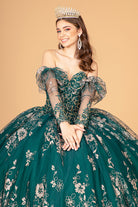 Embroidered Glitter Mesh Quinceanera Dress Detached Long Sleeve GLGL1944