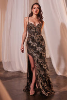 Black Gold | Sequin Embellished Gown with Sweetheart Neckline and High Slit CDCM358
