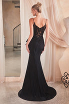 FITTED BLACK GOWN WITH SIDE PEPLUM CDKV1100