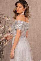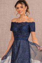 Glitter Print Mesh Cut-Away Shoulder A-Line Dress GLGL2942