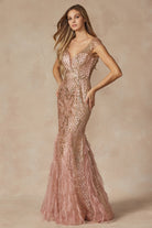 Prepare to shine in our stunning Cap Sleeves Illusion V-Neck Embellished Sequin Open V-Back Long Prom Dress, meticulously crafted from 100% polyester. Available in three exquisite colors—Emerald Green, Rose Gold, and Royal Blue—this dress features an elegant illusion V-neckline and a captivating open V-back, complemented by delicate cap sleeves.