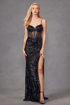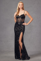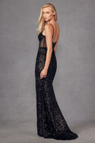 Elegant Long Evening Dress with Spaghetti Straps & Side Slit | SMC Dress