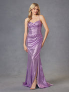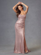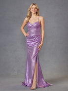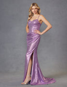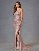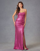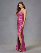 Strapless Metallic Fitted Side Slit Long Evening Dress