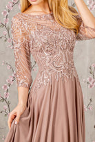 Metallic Sequin Sheer Neckline Chiffon A-line Long Dress GLGL3446