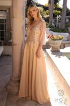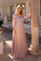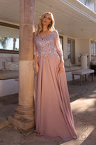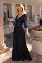 Discover sophistication in this exquisite smoky blue Mother of the Bride dress. Designed with a flattering V-neckline and graceful long sleeves, this gown exudes timeless elegance. Perfect for evening events, its long silhouette adds a touch of refinement, making it an ideal choice for creating unforgettable moments.