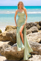 Cowl Neck Open Zipper Back Side Slit Side Cape Long Prom Dress