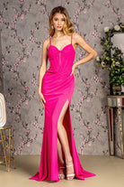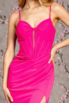 Ribbon Front Ruched Side Rome Jersey Mermaid Long Dress GLGL3458