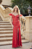 Choose from the delicate hues of light pink and bold red, and enjoy the flattering long length, sweetheart neckline, and cap sleeves or off-shoulder design. With its convenient zipper back closure and model number JT2402, it's the perfect blend of fashion and function.