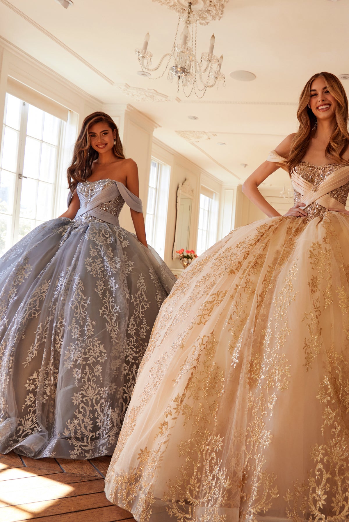 Discover breathtaking v-neck floral styles that command attention at galas, or embrace timeless beauty with our off-shoulder silhouettes. Expert beadwork adorns many pieces, while strategic cuts ensure perfect fits for all body types.