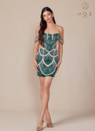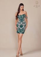 Black and White Art Deco Beaded Mini Dress | Off-Shoulder Sequin Party Dress