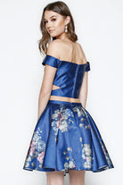Floral off-shoulder two-piece dress for cocktail and homecoming