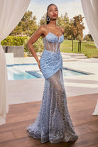 Sky Blue, Emerald Green, Hot Pink Sheer Corset Sequin Gown with Slit CDC155
