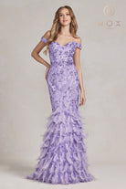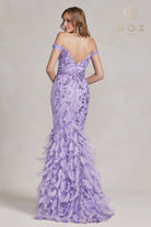 Off Shoulder Sweetheart Open Back Mermaid Feather Embellished Long Prom Dress NXC1106