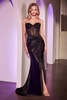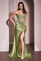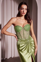 STRAPLESS FITTED SATIN & HOT STONE DRESS CDCD2408