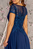 Bead Embroidery Sheer Neckline Chiffon A-line Long Dress GLGL3362