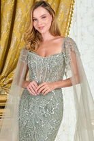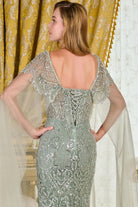 Embellished cap sleeves over cape sleeves fitted corset cover dress GLGL3704