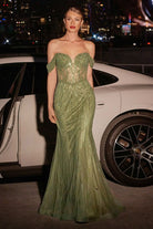 Elegant Off-Shoulder Mermaid Evening Gown with Glittering Beaded Embellishments CDCC341