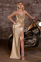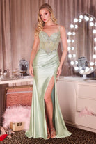 Beaded Fitted Gown Satin Formal Evening Dress with High Slit & Corset Back CDCC408