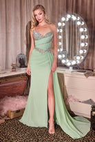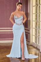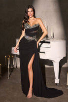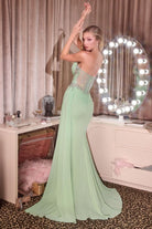 Crafted for moments that take center stage, this fitted gown features a sweetheart neckline adorned with shimmering beadwork and delicate appliqué. Soft draped chiffon wraps the bodice and waist, creating a sculpted hourglass silhouette while subtle sheer paneling adds a touch of allure. The flowing skirt cascades into a graceful train with a thigh-high slit, offering elegant movement and runway-worthy appeal—perfect for prom, pageants, and glamorous evening affairs. Silhouette: Fitted with flowing skirt & train Design: Sweetheart neckline, beaded bodice, draped chiffon detailing Fabric & Material: Embellished bodice with layered chiffon skirt Fit Detail: Structured bodice with sheer paneling & back zipper closure Occasions: Ideal for prom, pageants, red-carpet events, and formal celebrations Sizing: 0 – 18