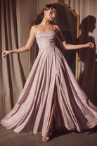 Make an entrance in this glittering iridescent gown, crafted from stretch fabric that catches the light with every move. Designed with a flattering scoop neckline, delicate spaghetti straps, and a structured bodice with an interior corset for added support. Fully lined for comfort, this A-line silhouette flows effortlessly into a floor-length skirt with a dramatic sweep and discreet pockets for added functionality. Finished with a back zipper closure, it’s perfect for formal galas, prom, or evening events where glamour is required. Key Features: Silhouette: A-line Design: Scoop neckline, spaghetti straps & structured bodice Fabric & Material: Iridescent stretch glitter fabric Fit Detail: Fully lined with interior corset & zipper closure Extras: Includes pockets Occasions: Ideal for prom, formal events, weddings & black-tie galas Size: XXS – 2X