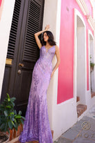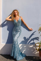 Deep V-Neck Floral Embroidered Tulle Gown NXE1273