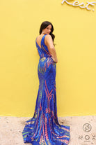 Deep V-Neck Fully Sequin Pattern Mermaid Gown NXR1402
