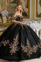 Detachable off shoulder strap bejeweled bodice corset back ball gown with detachable back bow GLGL3640