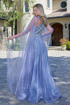 Embellished mock halter neckline raglan cape sleeves zipper a line dress GLGL3669