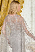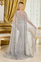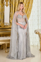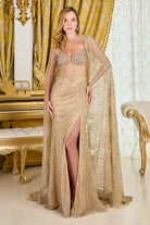 Embellished spaghetti straps v neckline basque waist fitted slit dress with detachable cape GLGL3698
