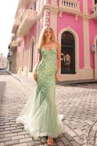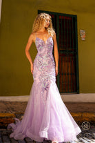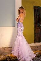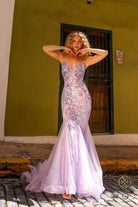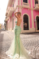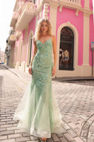 Full Iridescent Applique V-neckline Spaghetti Straps Mermaid NXC1416