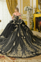 Off shoulder dangling bead straps cascading waist ruffle mini bows train with detachable back bow GLGL3670