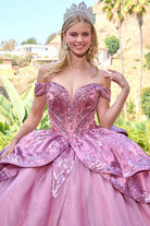 Off shoulder long sleeves deep v neck corset train ball gown with satin overskirt detachable bow GLGL3794