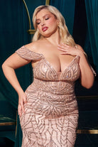 OFF THE SHOULDER CRYSTAL EMBELLISHED GOWN CDCC0689