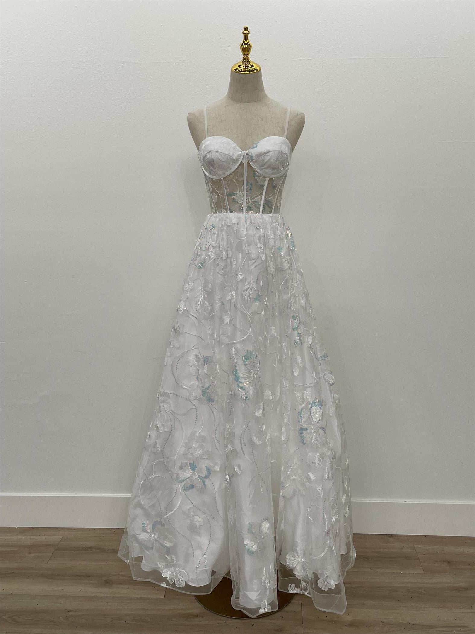 Sheer Bone Corset A-Line Floral Applique Dress NXT1332