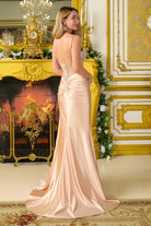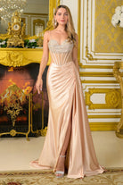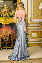 Spaghetti straps mesh corset stretch satin slit skirt dress with side trailing gathered waist fabric GLGL3807