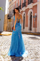 Show-stopping trumpet silhouette prom dress. The straight-across neckline offers a classic, sophisticated look while beautifully framing the décolletage. Crafted from delicate tulle and adorned with shimmering sequined embroidery throughout, this gown catches the light with every movement.