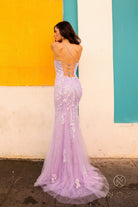 Straight across neckline trumpet silhouette tulle and adorned with shimmering sequined embroidery NXP1401