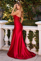 STRAPLESS EMBELLISHED FITTED SATIN GOWN CDCM376