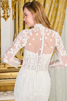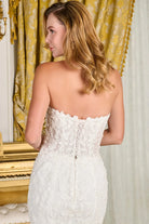 Strapless v neckline trumpet wedding dress train with detachable mock neck long sleeved top GLGL3830