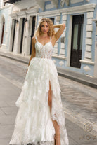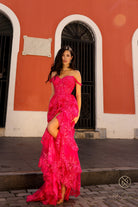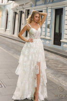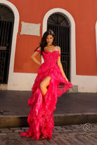 Off Shoulder A Line Ruffle Slit Prom Dress