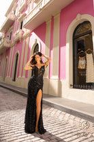 V-Neck Off-Shoulder Sequin Gown with Slit NXQ1389