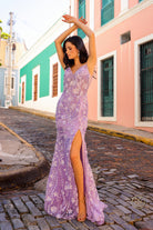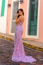 V-Neck Sequin Tulle Gown with Slit NXC1458