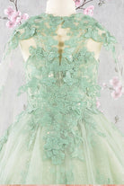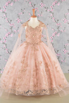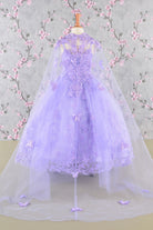3-D Butterfly Sequin Mesh Kids Dress Detachable Long Mesh Cape GLGK114