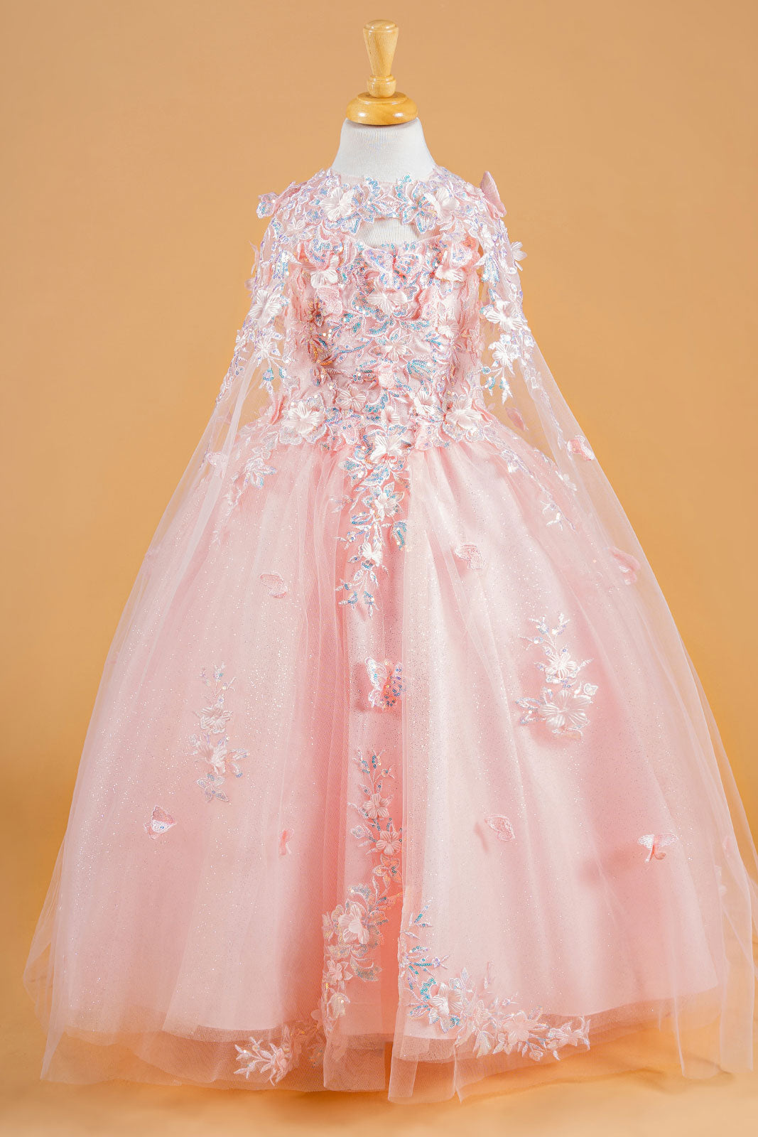 Let your little one step into her own magical fairytale with this enchanting Lilac Butterfly Princess Ball Gown. Designed with exquisite 3D butterfly and floral appliquΓ©s, delicate sequin embroidery, and a dazzling glitter finish, this dress is truly a showstopper. The flowing tulle cape overlay adds a dramatic touch of royalty, making it ideal for flower girls, birthdays, photoshoots, and pageants. The sweetheart bodice and corset detailing give a regal, yet comfortable fit sheβll adore.