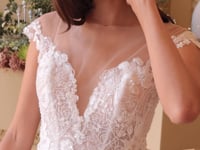 Turn your fairytale wedding dreams into reality with this romantic off-shoulder A-line bridal gown. Designed to enchant, this dress features a flattering sweetheart neckline and delicately draped off-the-shoulder sleeves that highlight your collarbones. The bodice is intricately adorned with floral lace appliqués and beadwork, cascading gracefully into the voluminous tulle skirt. A subtle nude underlay enhances the dimensional floral details, while the chapel train adds timeless elegance and movement with every step. Perfect for garden weddings, chateau ceremonies, or any romantic venue.