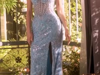 Perfect for spring formals, proms, and upscale evening events, this gown blends a soft pastel tone with head-turning sparkle for a truly magical effect.
