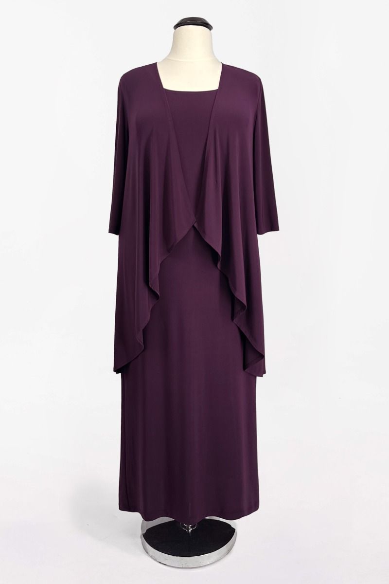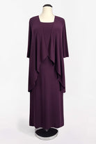Plus Size Eggplant Midi Dress with Draped Jacket – Elegant 2-Piece Outfit for Special Occasions
