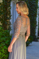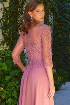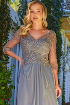 A-Line Evening Gown | Beaded Lace Bodice with 3/4 Sleeves | Mother of the Bride Dress GL3574