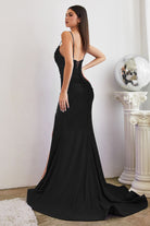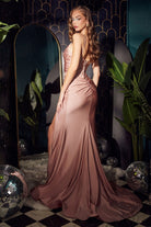 Royal Blue,Black,Red Satin Gown with Rhinestone Straps – Ruched Sweetheart Slit Formal Dress CDCD888